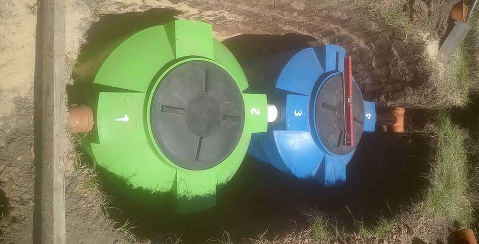 3- Tanque biodigestor con filtro, sedimentos y digestor de aguas grises y negras, para el degradado de materia orgánica y posterior irrigación de tierras.